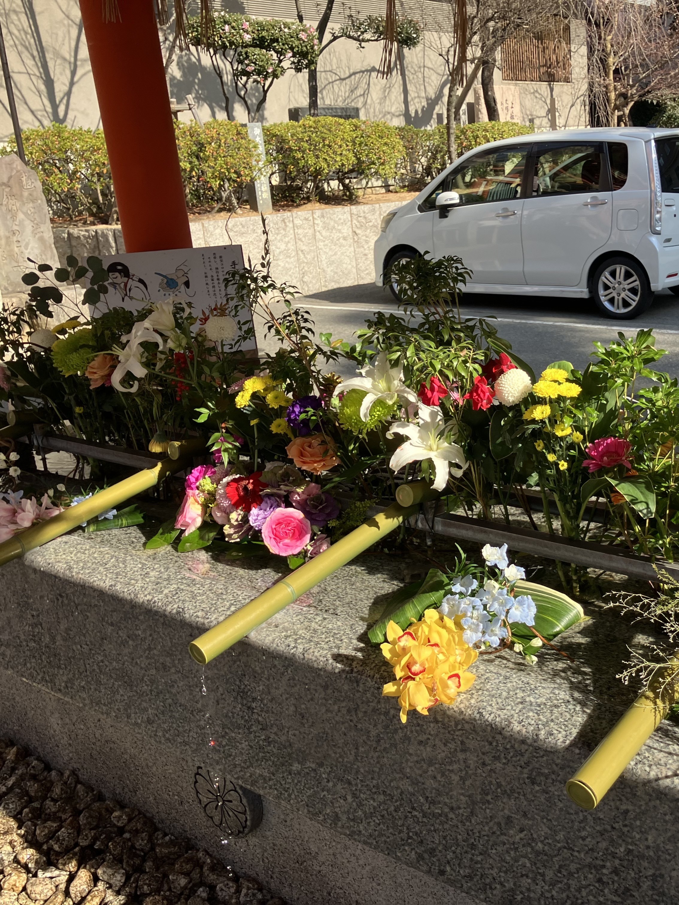 手水舎のお花もとてもきれいで、新年らしい清々しい気持ちになります♪
